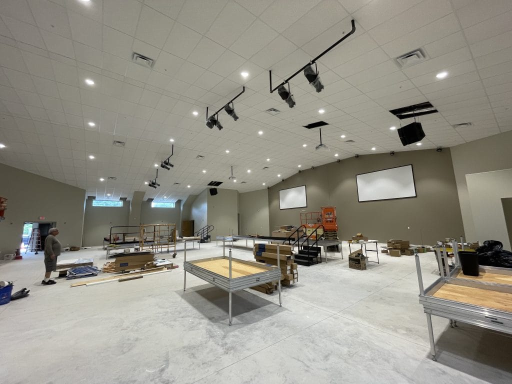 Engineering Direct provided all construction documents required to permit and build the new sanctuary addition consisting of approximately 7,500 SF of congregation and worship space. This included all interior architectural, electrical, and mechanical engineering such as: new floorplan and design layout, ADA accessibility, room and door finish schedule, code compliance data, new utility services, electrical distribution panels for HVAC, lighting, audio/visual, and general purpose, emergency egress lighting, interior and exterior LED lighting, fire alarms & fire protection, an energy audit for HVAC loads, and plumbing & HVAC design, layout, and specifications.