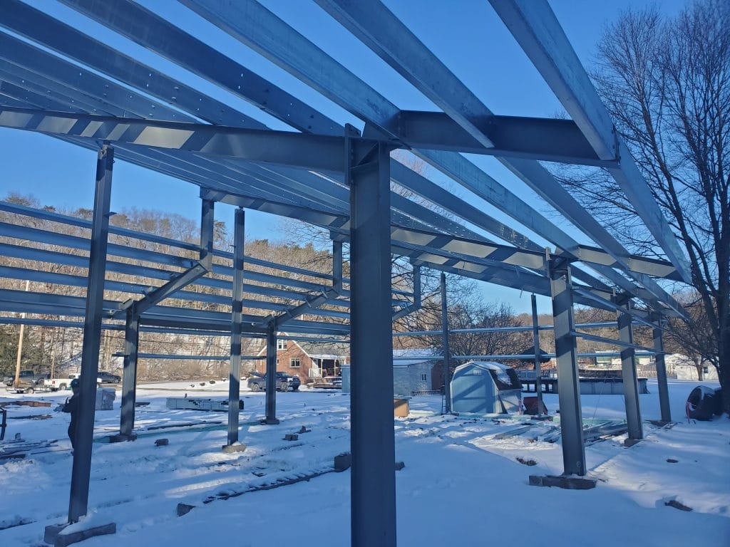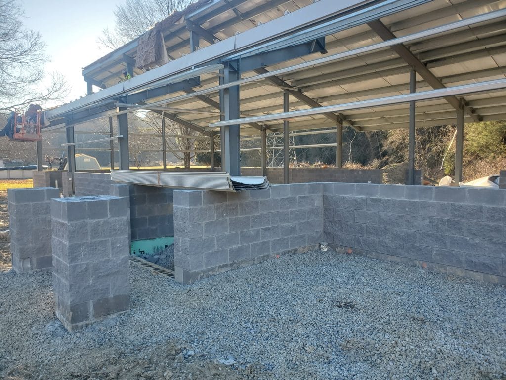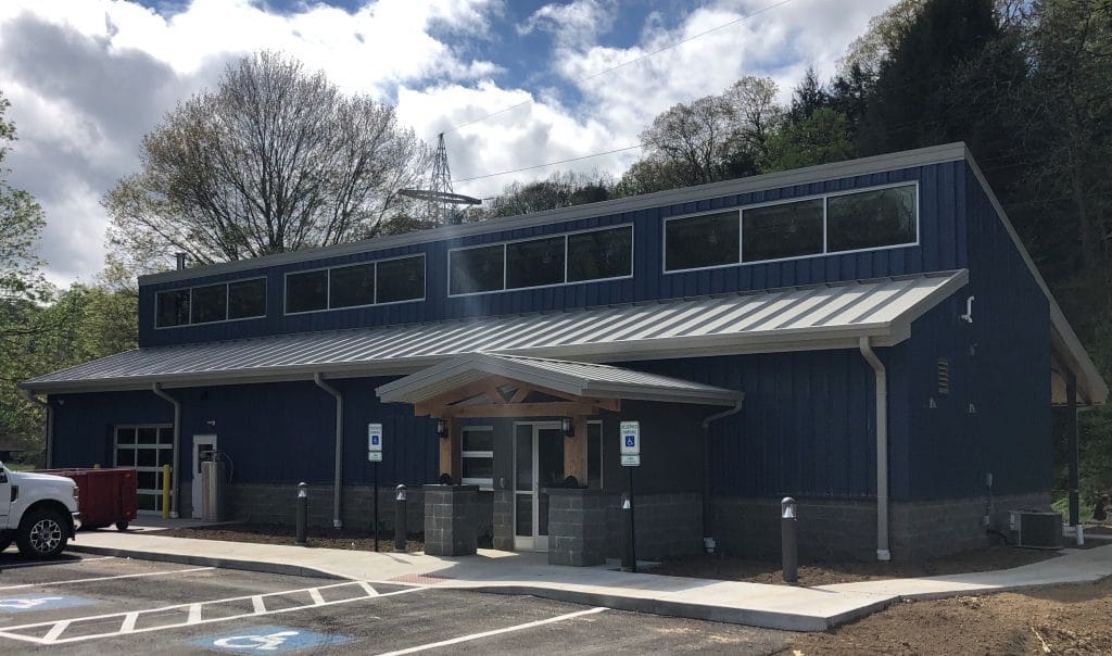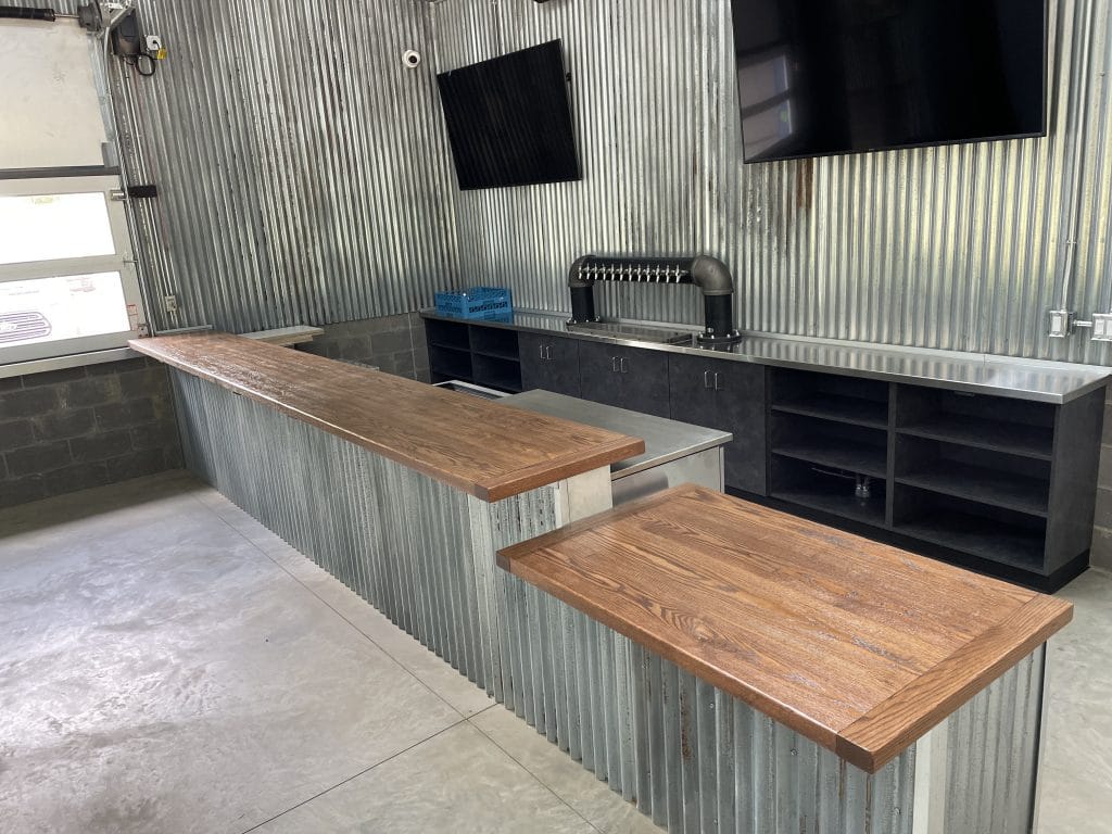 The inspiration for this building was born out of a passion for brewing beer and love for the outdoors. The owners are former healthcare professionals and home brewers whose passion and creativity grew into an expertise brewing beer and ultimately the need for a designated brewing space and gathering place for tasting and socializing. The design for the building further evolved when the location of the building was chosen. Part of the vision was to connect the brewery and tasting room to its peaceful surroundings. Located alongside Big Sewickley Creek, the brewery features a sawtooth clerestory frame configuration, vaulted ceilings, clerestory windows, and overhead doors on both the north and south sides to offer an open-air atmosphere and connect patrons to the outdoors while being inside the tasting room. The overhead doors on the south side open up to a large, covered porch that leads to a “backyard” with picnic tables and firepits where those visiting can relax next to the creek. The exterior wall panel color was chosen to stand out while still offering a cool look that complements the natural tones of the outdoors. The timber frame front entrance canopy was implemented to create an inviting lodge-like appearance. The tasting room itself is modern, yet rustic, with synthetically rusted galvanized S panels that give the interior walls an aged, weathered look, wooden countertops, clean structural lines, and natural concrete floors. The brewing area is complete with cooler space and brewing equipment. Altogether the 3,500 SF space is an inviting, modern establishment that fulfills its original intended purpose which was to provide a gathering place for the local community. The building is a fully operational brewery and tasting room with a bar, cooler space, and brewing equipment.