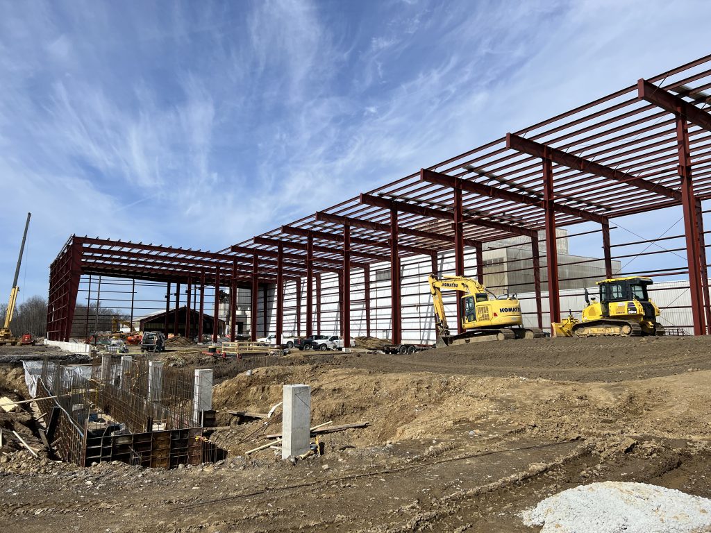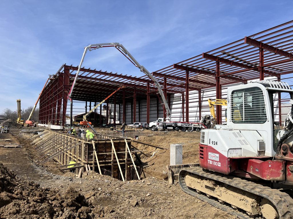 Zarbana Aluminum Extrusion has expanded their production with a new 69,300 SF stand-alone facility for producing billet log castings. This facility includes a deep casting concrete pit, approximately 28′ deep with an additional 22′ deep, 2′ diameter caisson, and a 20-ton overhead crane spanning 82′ of the new facility. The new building also includes all poured concrete foundation walls with several large interior foundation sections for new equipment, some at 8′ in-depth, or more. The roof is single-sloped at a height in excess of 54′ on the high end to provide the necessary clearance inside the building for equipment.